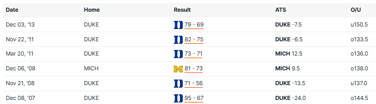 Michigan vs Duke Recent Meetings