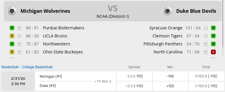 Michigan vs Duke Recent Meetings
