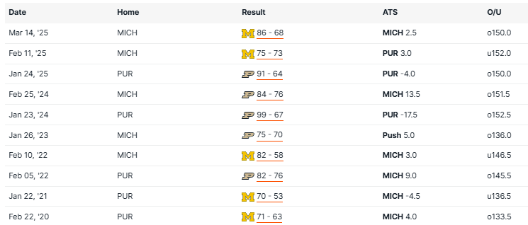 MICHIGAN VS PURDUE RECENT MEETINGS