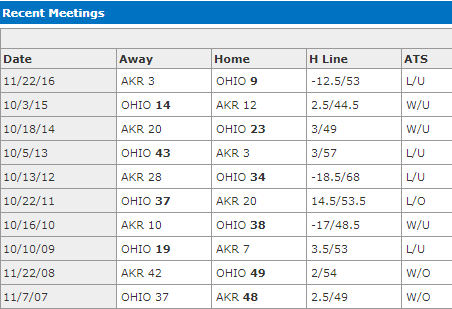 - Zips are 5-14 ATS in their last 19 games after accumulating less than 275 total yards in their previous game.