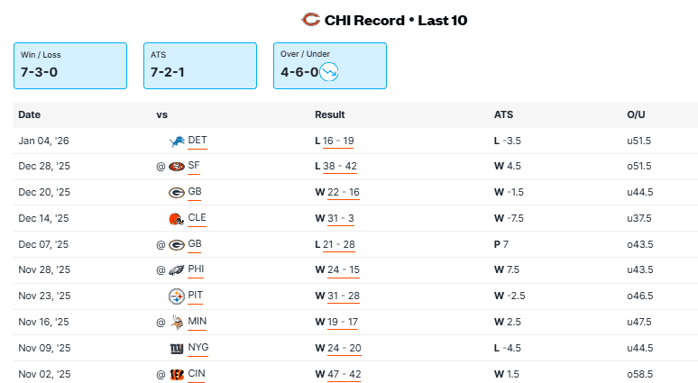 The Bears come into this game in much better form. Green Bay lost four in a row to close the season and the defense has been terrible. Jordan Love is set to come back after missing three weeks and there could be some rust. He’s had a solid season but threw three picks in his last two full games and the Bears have a league-best 23 interceptions on the season. The Bears don’t have the best passing game, but the backfield is solid and should have success against the Packers defense. It’s also going to be cold and windy, so a good running game is a must.