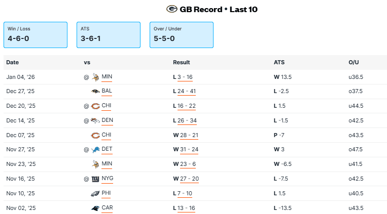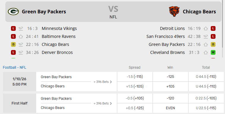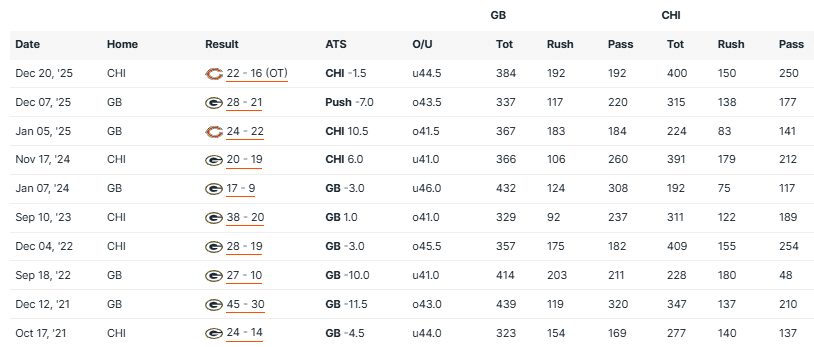Packers vs Bears Recent Meetings