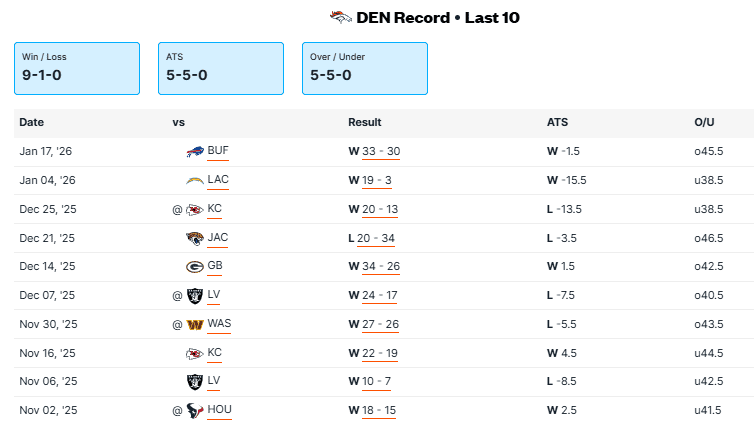 New England (16-3) at Denver (15-3)