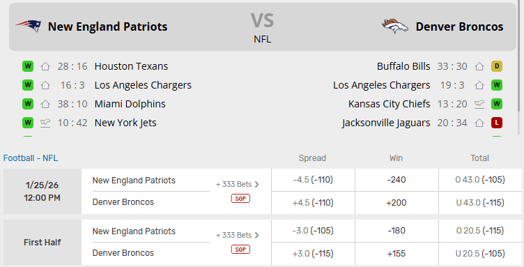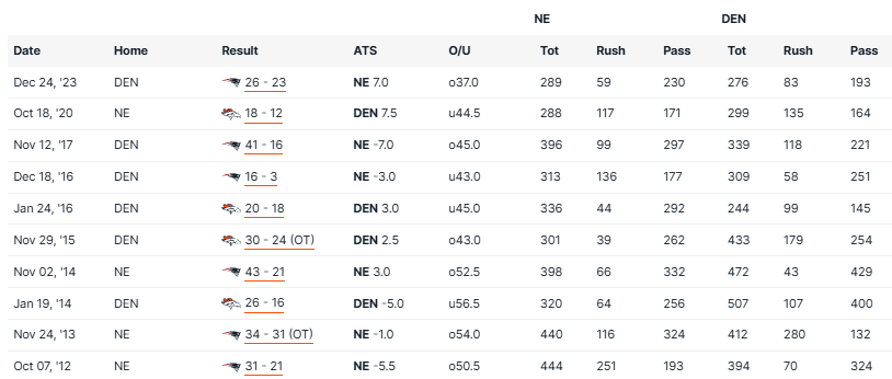 Patriots vs Broncos Recent Meetings