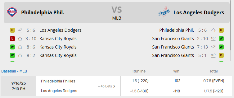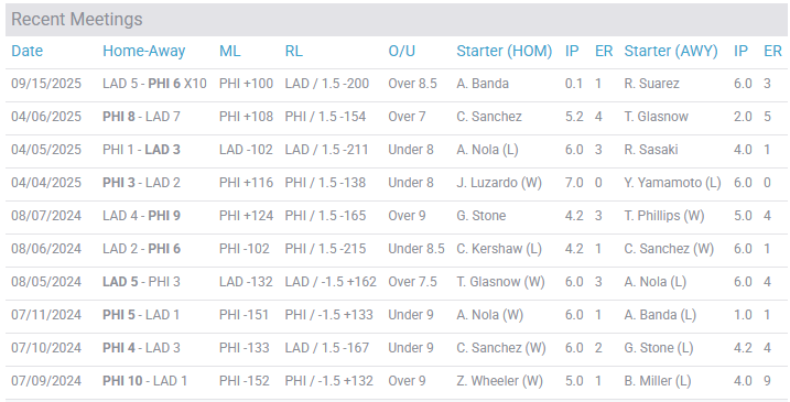 Phillies vs Dodgers Recent Meetings