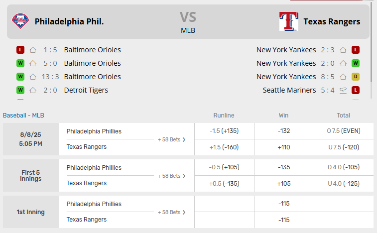 Phillies vs Rangers Recent Meetings