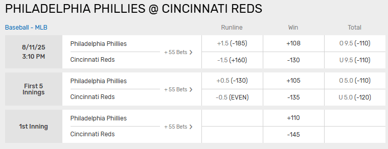 | 7/5/25 | PHI 5 - CIN 1 | R. Suarez | N. Lodolo | -200/9 | U |
