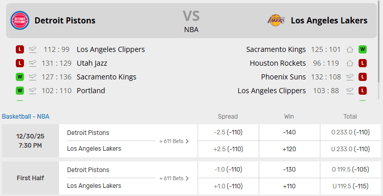 Despite losing back-to-back games, the Pistons have been very good on the road this season. They have also not lost three games in a row all season. I expect a big bounce back after their loss to the Clippers the other night. The Lakers have been wildly inconsistent this season. They have also lost three of their past four home games badly. Detroit is the better team and they will show that tonight.