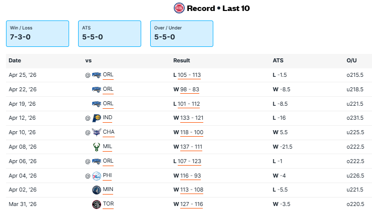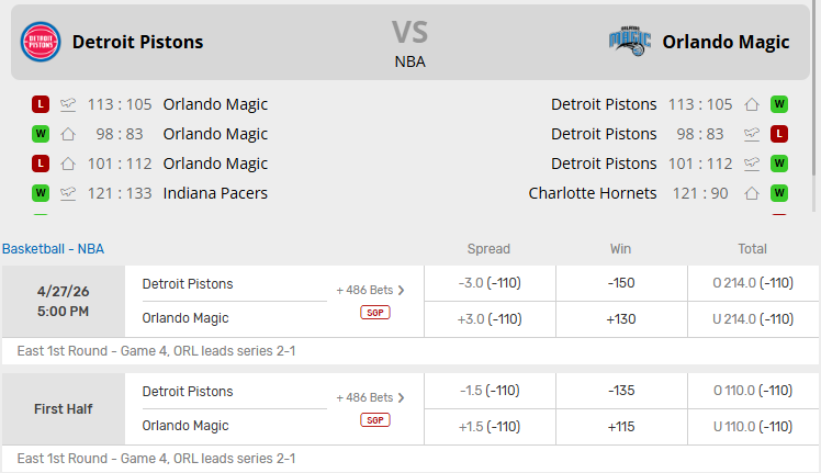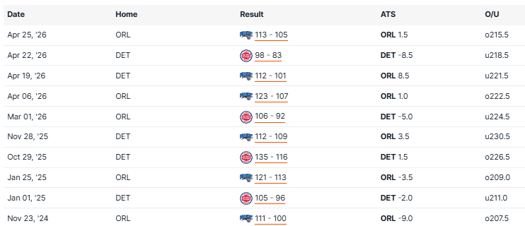 Pistons vs Magic Recent Meetings