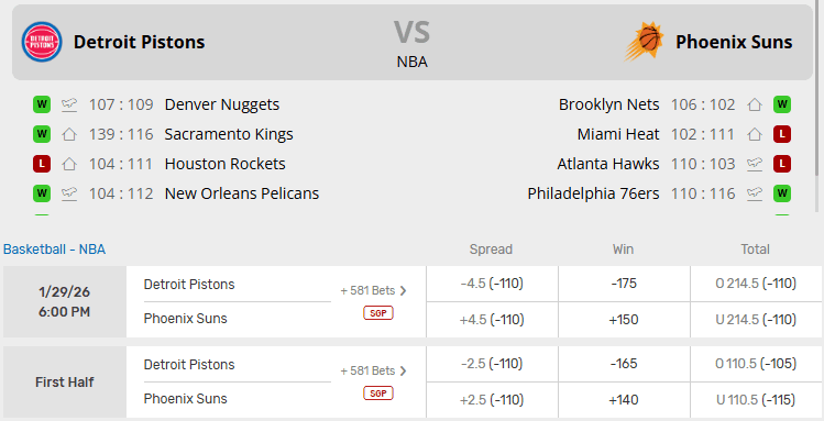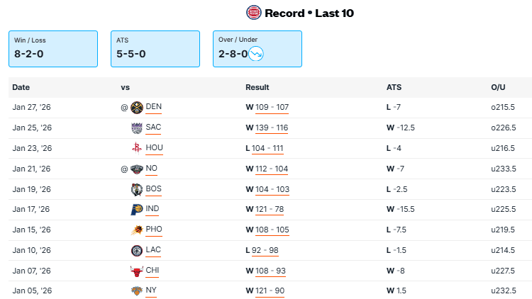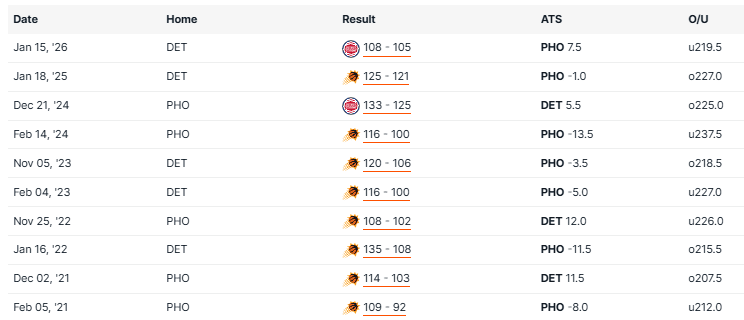 The Suns dominated this series for several years, but Detroit has won two of the last three, including a win two weeks ago. The Pistons are also in better form right now, winning nine of 11 and six of their last seven games. Detroit has also been very good on the road, going 15-6 straight up. In Phoenix’s last 28 home games against teams with a winning road record, the Suns are just 8-20 ATS. With Devin Booker out, the Suns are going to have a tough time against a better team.