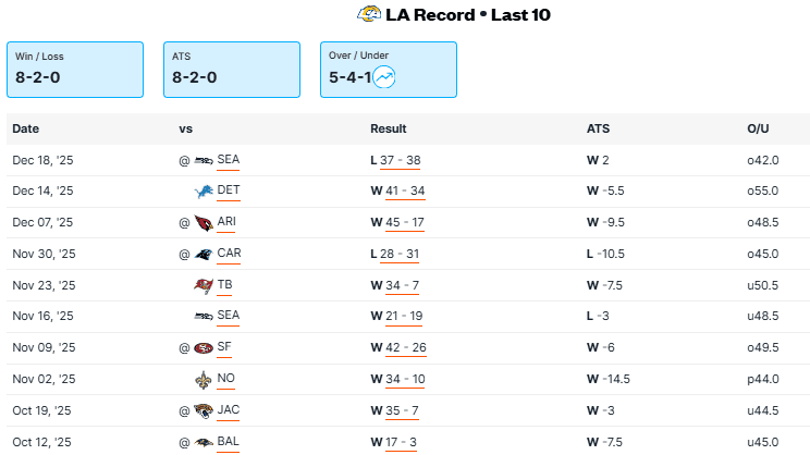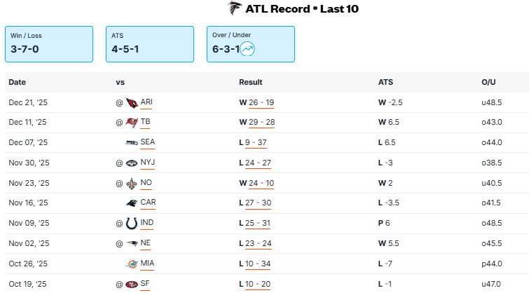 This game isn’t as important for the Rams as it could have been. After Sunday’s action, the 49ers and Seahawks will square off for the AFC West title and No. 1 seed in the postseason. In all probability, the Rams will be playing the Eagles in the wild card round. Motivation is one reason I like the Falcons tonight, the other being Atlanta has won two in a row, scoring 26 and 29 points in those games, while L.A. has allowed 38 and 34 the last two weeks. The Falcons have won five of their last six against the Rams and are 8-1 SU in their last nine Monday night games. Give me the points.