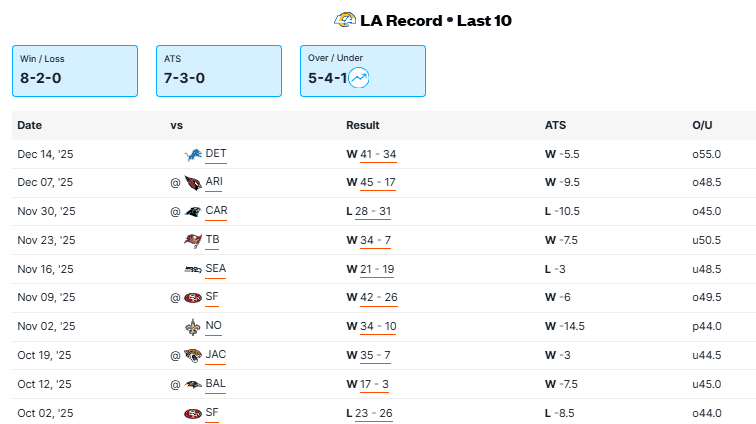 You can’t get any better for a Thursday night game than this Week 16 battle between two teams who are the favorites to win the NFC. Both are 11-3 SU and 10-4 ATS. Both have top five offenses and defenses. The Rams won the first meeting in Inglewood after picking off Sam Darnold four times. The Seahawks offense struggled last week against Indianapolis and I think they will have trouble once again this week. The Rams have owned the Seahawks in recent years, going 11-3 ATS over the last 14 and 5-0 ATS in Seattle. The Rams are also 11-2 ATS over their last 13 road games and 17-3 ATS in their last 20 December games. It won’t be easy, but I like the Rams in this one.