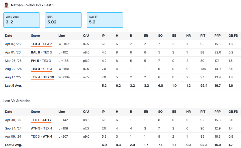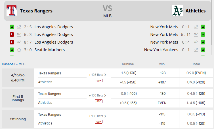 I’ll take the red-hot Athletics in the series opener against the Rangers. The A’s are coming off one hell of a road trip in New York in which they went 5-1 against the Mets and Yankees. Pitching was the key on the trip with three shutouts and they were big underdogs in all six of those games. Severino has outpitched Eovaldi so far this season and allowed just two earned runs in the Athletics win over the Yankees last Wednesday. Eovaldi is coming off a nice outing against Seattle, but was rocked in his first two starts of the season. I’ll go with the hotter team and pitcher here at home.
