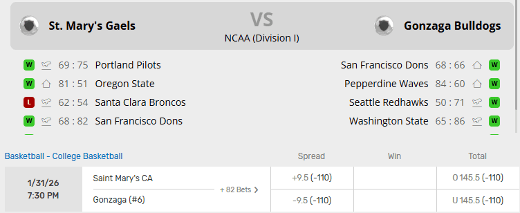 SAINT MARY’S VS GONZAGA RECENT MEETINGS