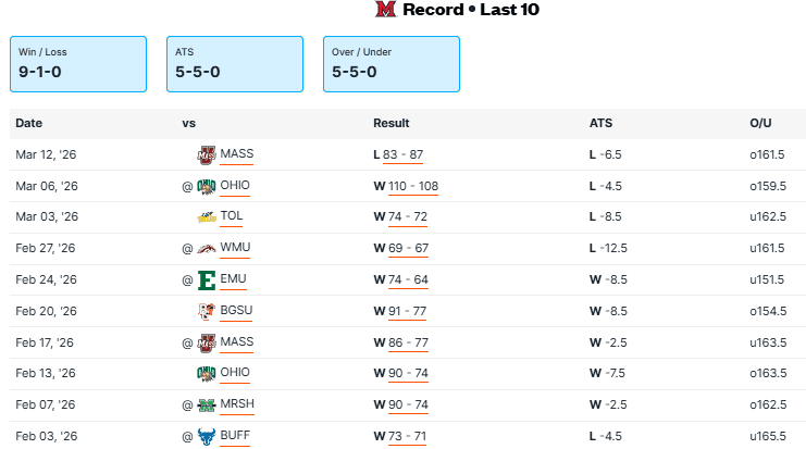 SMU vs Miami OH Recent Meetings