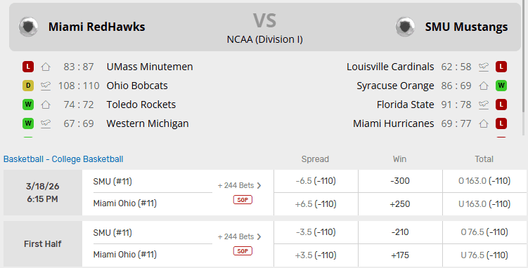 SMU (20-13) vs Miami OH (31-1)
