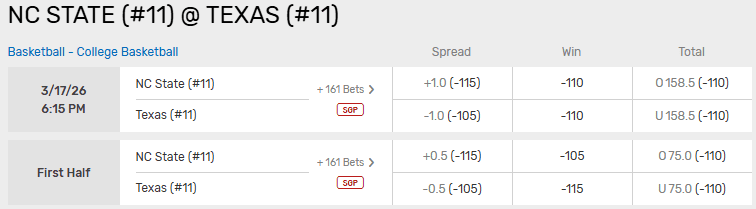 When making picks for NCAA Tournament games, one of things I look for is who is playing better right now. Well, neither team in this case. Texas has lost five of six, while the Wolfpack are 2-7 in their last nine. Despite NC State’s struggles recently, I’m going to back them here. They are averaging more than 85 points per game in their last three games, while making over 48 percent of their shots. Texas has scored less than 80 points per game and made less than 43 percent of their shots. NC State also rebounds the ball well and grab more than eight offensive rebounds per game, which will give them more scoring chances. The Longhorns are giving up more than 89 points per game in their last three games, so expect them to have a hard time slowing down the Wolfpack. I like NC State to advance to the field of 64.