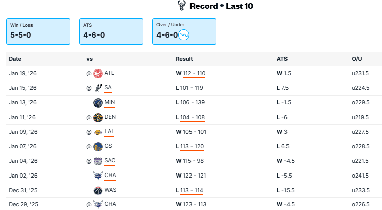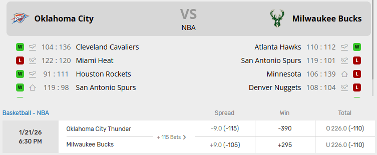 Thunder vs Bucks Recent Meetings