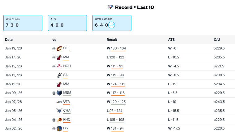 Opening Odds: Oklahoma City -9/228