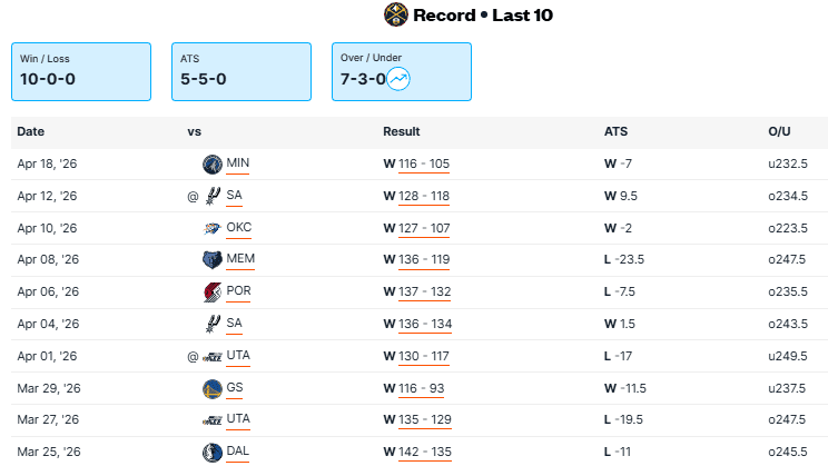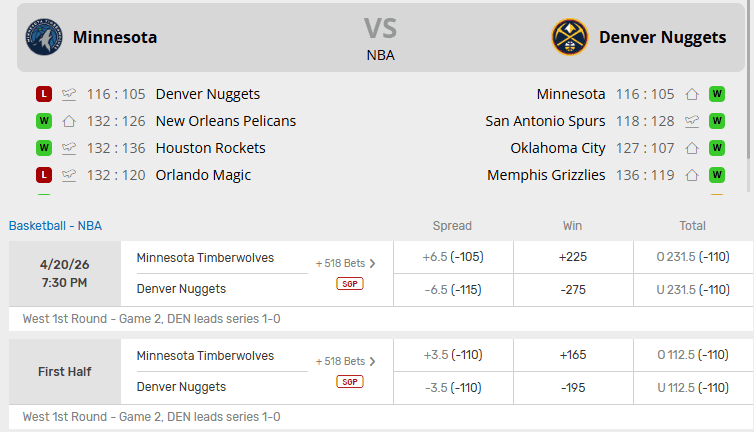 I have to take the Nuggets in this one. It’s been over a month since they last lost and the offense is too much for Minnesota to handle. Denver has won 12 in a row and have scored at least 121 points in 11 of those. They took control of a close game on Saturday in the third quarter en route to a Game 1 win and cover. They are now 4-1 SU and ATS against the T’wolves this season. Anthony Edwards was admittedly rusty and tired in the series opener and he is hardly 100 percent and not in game shape for high altitudes. Denver may not sweep this series, but I do think they cruise in Game 2.