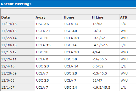 - Bruins are 2-8 ATS in their last 10 meetings in Southern California.