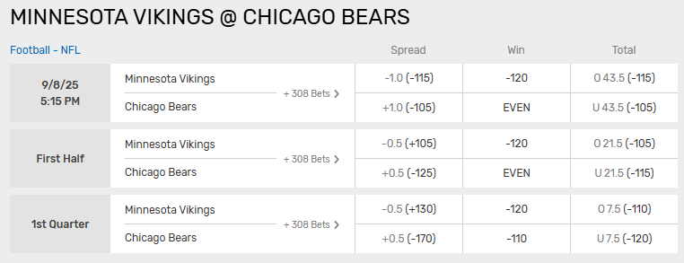 It’s a new era in Chicago and the Bears are finally ready to take the next step. Caleb Williams enters his second season, coming off a respectable rookie campaign and should be better protected after being sacked 68 times last year. Chicago’s roster is also rated as one of the most improved. JJ McCarthy will make his first career start… on the road… against a division rival… and on Monday Night Football. Soldier Field will be rocking and that will help lift the Bears to a victory.
