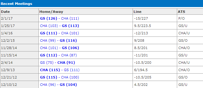 - Warriors are 39-16-3 ATS in their last 58 Wednesday games.