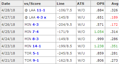Skaggs improved to 3-1 last time out when he shutout the Houston Astros for seven innings, allowing just four hits in the 2-0 victory. Skaggs was hit hard in his previous outing, however, allowing six runs and eight hits in 4.1 innings by Boston at home on April 18th. He has made 62 starts in his career but will be facing New York for the first time.