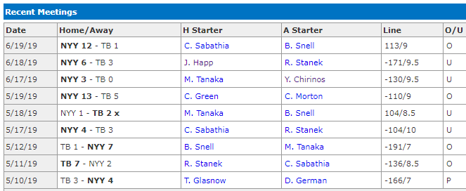 Yankees are 4-0 in the last 4 meetings.
